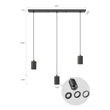 | Herstellername | Calex Retro pendant lamp with ceiling plate rectangular 10x70cm, black fitting 3xE27 (2 meter cord) | |