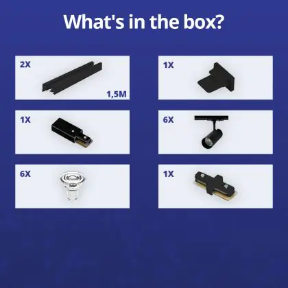 Komplettset 1-Phasen Rail 3 Meter Schwarz | incl. 6x Spot + GU10 2700K 3W Dimmbar + Abschlusskappe, Stromanschluss und I-Verbinder
