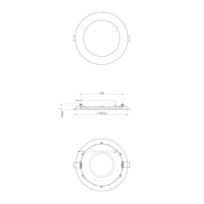 | Herstellername | Budgetlight LED Downlight Slim V2.0 IP44 12W 3000K Cutout Ø150mm Frame Ø170mm w/ 1-10V driver | |