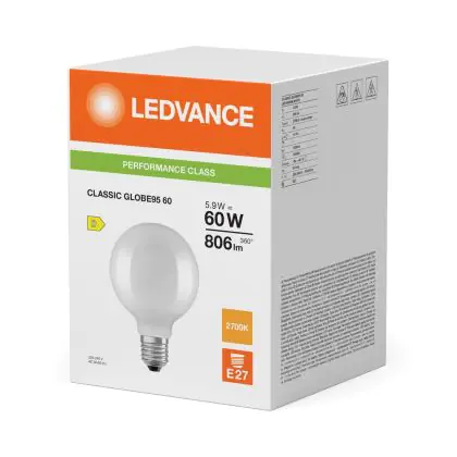 | Herstellername | LED CLASSIC GLOBE P 5.9W 827 Frosted E27 | |