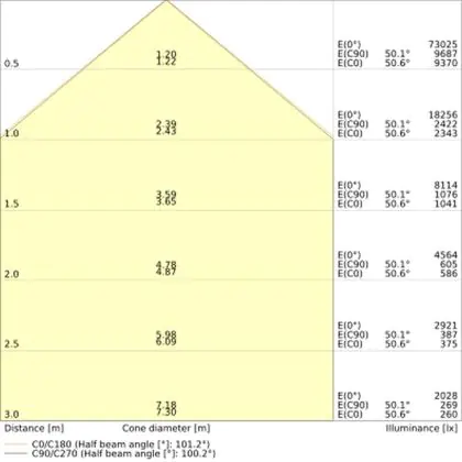 Der Abstrahlwinkel bezeichnet den Winkel, in dem das Licht aus der Lichtquelle ausgestrahlt wird. Er wird in Grad (D) angegeben. Je geringer die Gradzahl des Abstrahlwinkels ist, desto kleiner ist auch der Durchmesser des Lichtkegels, den die Lichtquelle produziert.
