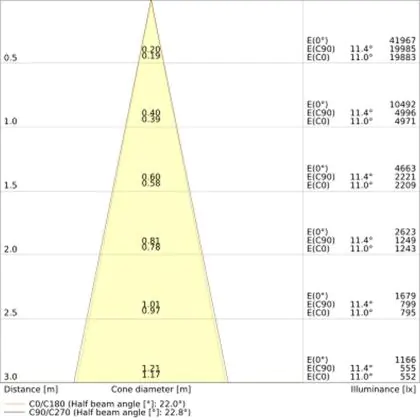 Der Abstrahlwinkel bezeichnet den Winkel, in dem das Licht aus der Lichtquelle ausgestrahlt wird. Er wird in Grad (D) angegeben. Je geringer die Gradzahl des Abstrahlwinkels ist, desto kleiner ist auch der Durchmesser des Lichtkegels, den die Lichtquelle produziert.