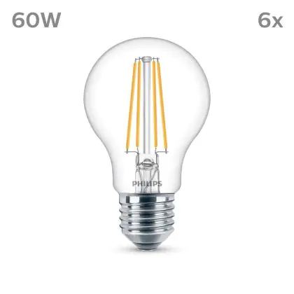 | Herstellername | Box 6 stuks - Philips LED Lamp Transparant - 60 W - E27 - Koelwit licht | |