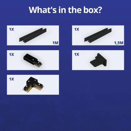 Rail Set 1-Phasen L 1 x 1,5 Meter Schwarz | incl. Abschlusskappe, Stromanschluss und L -Verbinder