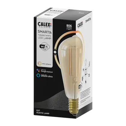 Description Calex Smart Tuya Wifi E27 Edison Filament7W 806lm - 818-830 Accordable Blanc | Dimmable - Remplacement 60W