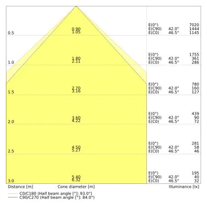 Le code couleur se compose de l'indice de rendu des couleurs (IRC) et de la température de couleur (Kelvin). Le premier chiffre indique le rendu des couleurs (1 = très mauvais rendu des couleurs, 9 = meilleure authenticité des couleurs). Le deuxième et troisième chiffre indiquent la température de la couleur. Exemple : Le code couleur "830" indique que la lampe a un bon rendu des couleurs (8) et une couleur de lumière blanche chaude (30 = 3000K). |