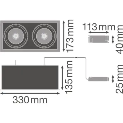 Ledvance Spot LED Carré Multi inclinable Noir-Blanc 2x30W 5400lm 38D - 840 Blanc Froid | Diamètre 320x160mm est un spot LED encastrable. Ce luminaire est conçu pour un éclairage d’accentuation pour un usage domestique ou bien professionnel. LED Intégré, ce spot LED Ledvance en Aluminium a besoin d’une place nécessaire de 320x160mm de largeur et 250mm de profondeur. Ce luminaire est compatible avec une ampoule GU10, il est important de faire attention si vous décidez de changer d’ampoule.