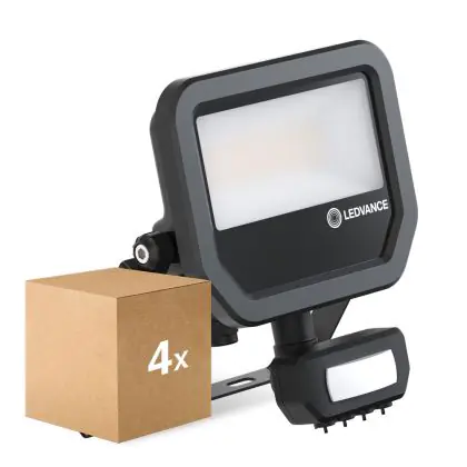 Le Lot 4x Ledvance Projecteur LED Aluminium Noir 17W 2400lm 100D - 840 | IP65 - Détecteur de Mouvement et de Lumière - Symétrique permet une économie d’énergie importante tout en conservant une excellente qualité d’éclairage. Sa technologie LED Intégré lui permet également d’avoir une très longue durée de vie pouvant aller jusqu’à 100000 heures. Ce projecteur LED est étanche, avec son indice de protection IP65 lui permettant d’être hermétique à la poussière et à l’eau. Disponible dans la couleur 4000K - Blanc Froid et un flux lumineux de 2400 Lm, ce projecteur LED est la solution idéale pour le remplacement de vos anciens projecteurs conventionnels.