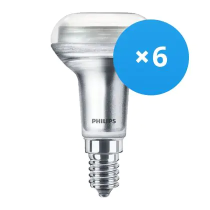 La lampe LED Lot 6x Philips Corepro LED Spot E14 R50 1.4W 105lm 36D - 827 Blanc Très Chaud | Équivalent 25W avec culot E14 (Ampoule à vis petit culot) est le remplacement idéal des lampes à incandescence et halogènes classiques. En raison de la faible consommation d'énergie, vous économisez considérablement sur vos coûts d'énergie. Les lampes à LED Philips n’utilisent qu’une petite partie de la puissance (1.4 W) que les lampes à incandescence et halogènes classiques (25 W). Les lampes à LED ont une excellente classe énergétique F, ce qui signifie qu'elles sont très écologiques et peuvent être recyclées après utilisation. En raison de leur durée de vie considérable de 15000 heures, vous n’aurez pas à les changer de si tôt.