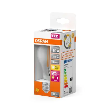 Cette ampoule Osram Classic LED E27 Poire Filament Claire 7.3W 806lm - 827 | Détecteur De Mouvement Et De Lumière - Remplacement 60W avec son efficacité lumineuse de lumen par watt vous permettra de profiter d’un éclairage de qualité. Avec sa durée de vie de 15000 heures, vous n’aurez pas à vous soucier de son remplacement avant quelques années.