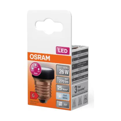 Cette ampoule Osram LED Plat Lamp LED E27 Special Dépolie 3.5W 270lm - 840 | 3 Niveaux De Gradation Dimmable - Remplacement 25W avec son efficacité lumineuse de lumen par watt vous permettra de profiter d’un éclairage de qualité. Avec sa durée de vie de 25000 heures, vous n’aurez pas à vous soucier de son remplacement avant quelques années.