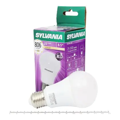 Cette ampoule Sylvania ToLEDo E27 Poire Dépolie 8.5W 806lm - 827 | Remplacement 60W avec son efficacité lumineuse de lumen par watt vous permettra de profiter d’un éclairage de qualité. Avec sa durée de vie de 15000 heures, vous n’aurez pas à vous soucier de son remplacement avant quelques années.